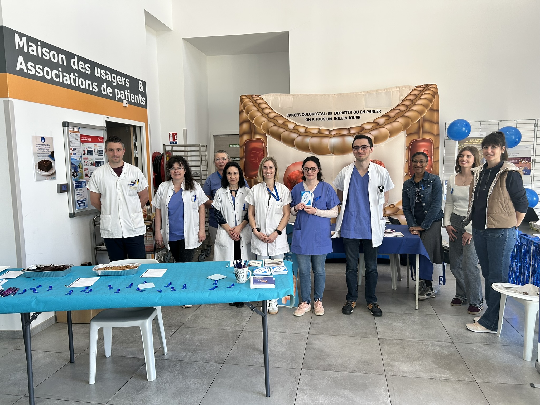 Dans le cadre du mois de promotion du dépistage du cancer colorectal, les professionnels du Centre Hospitalier de Bourg-en-Bresse se mobilisent et sensibilisent le grand public à cet enjeu de santé publique. Les professionnels du service de gastroentérologie ont tenu un stand dans le hall principal du CHB, le jeudi 12 mars 2026 avec le soutien du Dépistage des cancers Auvergne Rhône Alpes – CRCDC AuRA. Ils en ont profité pour sensibiliser les patients sur l’hygiène de vie, la diététique et l’activité physique permettant de réduire les risques de cancer.